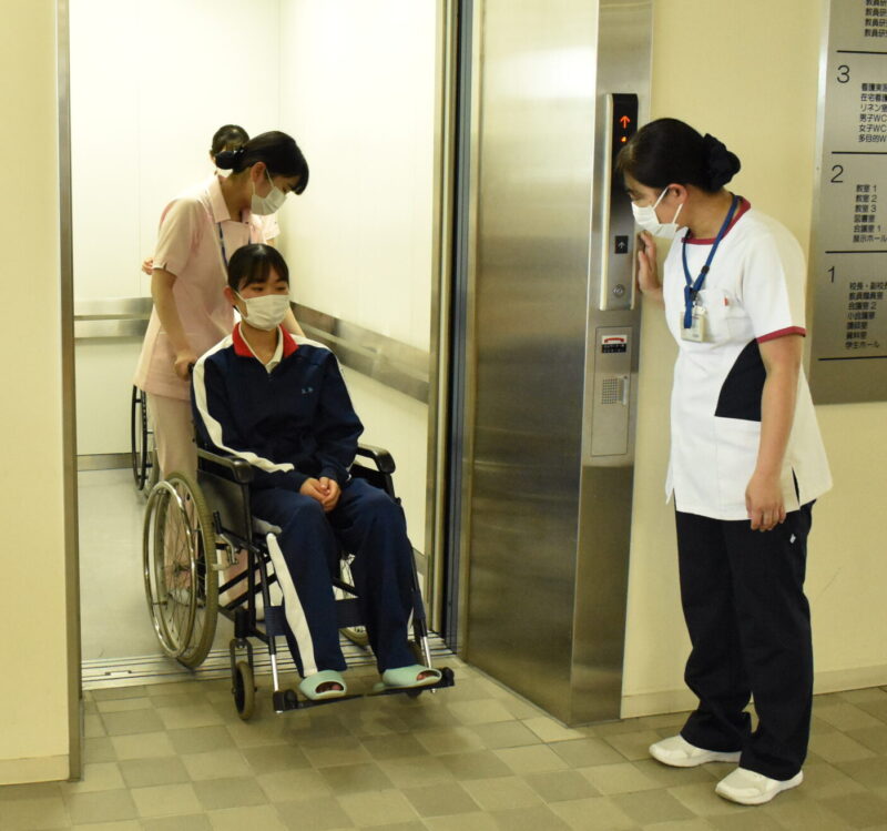 看護者は、ゆっくり押しているつもりでも、患者役になり車いすに乗っていると意外と早く感じたり、小さな段差でも車いすがスムーズに進まないなど学びがありました。